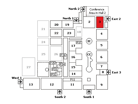 Aunque la feria empieza dentro de una semana, adelanto ya nuestra presencia por si alguno de vosotros os queréis pasar por allí. O mandar a algún amigo o conocido a que se dé una vuelta por el stand y me salude personalmente. En el plano del Hall 3 puedes ver en gris la zona ocupada por las empresas españolas. Son 500 m2, de los que MTC Soft ocupa solo 12, por lo que te puedes hacer una idea del tamaño del pabellón (y hay más de 30).